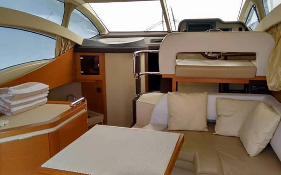 The Azimut 40 is a 40-foot luxury flybridge yacht launched by the Avigliana, Italy-based firm in 2005. One of the more compact vessels offered by Azimut, this yacht nevertheless impresses with a wealth of outdoor space, a curvaceous Stefano Righini-designed exterior and lavish internal spaces from the artistic hand of renowned stylist Carlo Galeazzi. The open top flybridge on this model comes equipped with structural supports for a Bimini roof for added protection from the elements, and is large enough to host a rear, L-shaped sofa, a starboard side cocoon-lounge with a spacious sunpad, and an upper helm station to port. Out on the foredeck there is also a sunpad space big enough for three sunbathers to soak up the afternoon sun. Azimut is excellent at building flybridge areas that are versatile and fun.